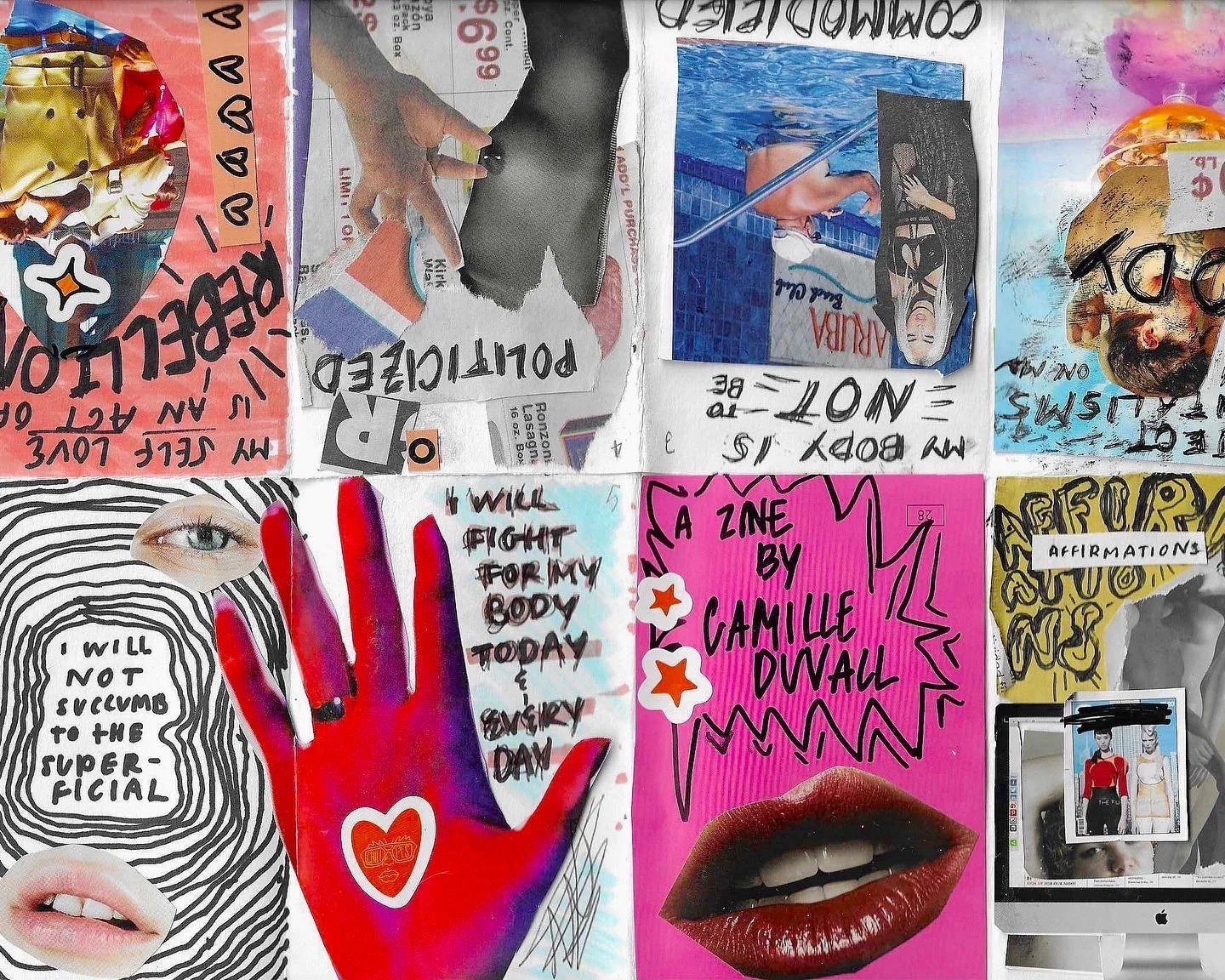 mixed media zine turned photo series featuring words of affirmation against capitalisms claim on the body.